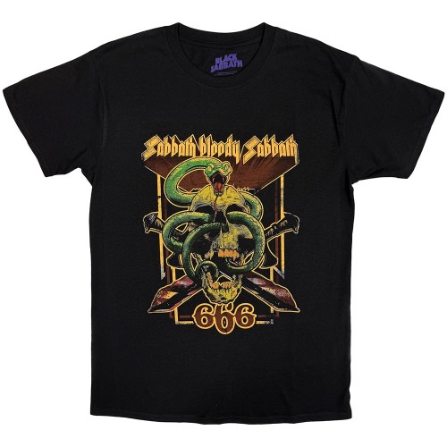 An official licensed Black Sabbath T-Shirt featuring the Bloody Sabbath 666 design motif.